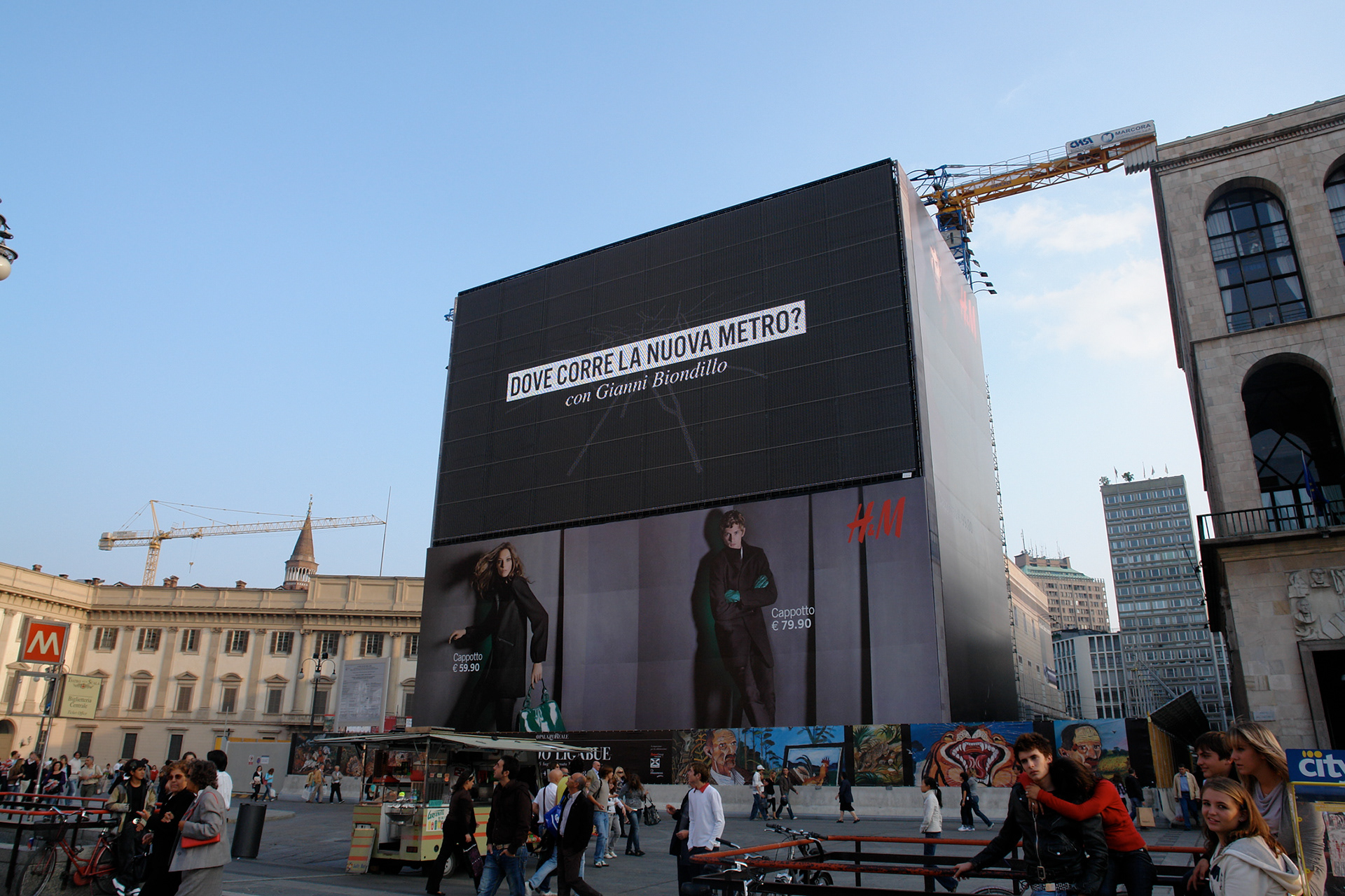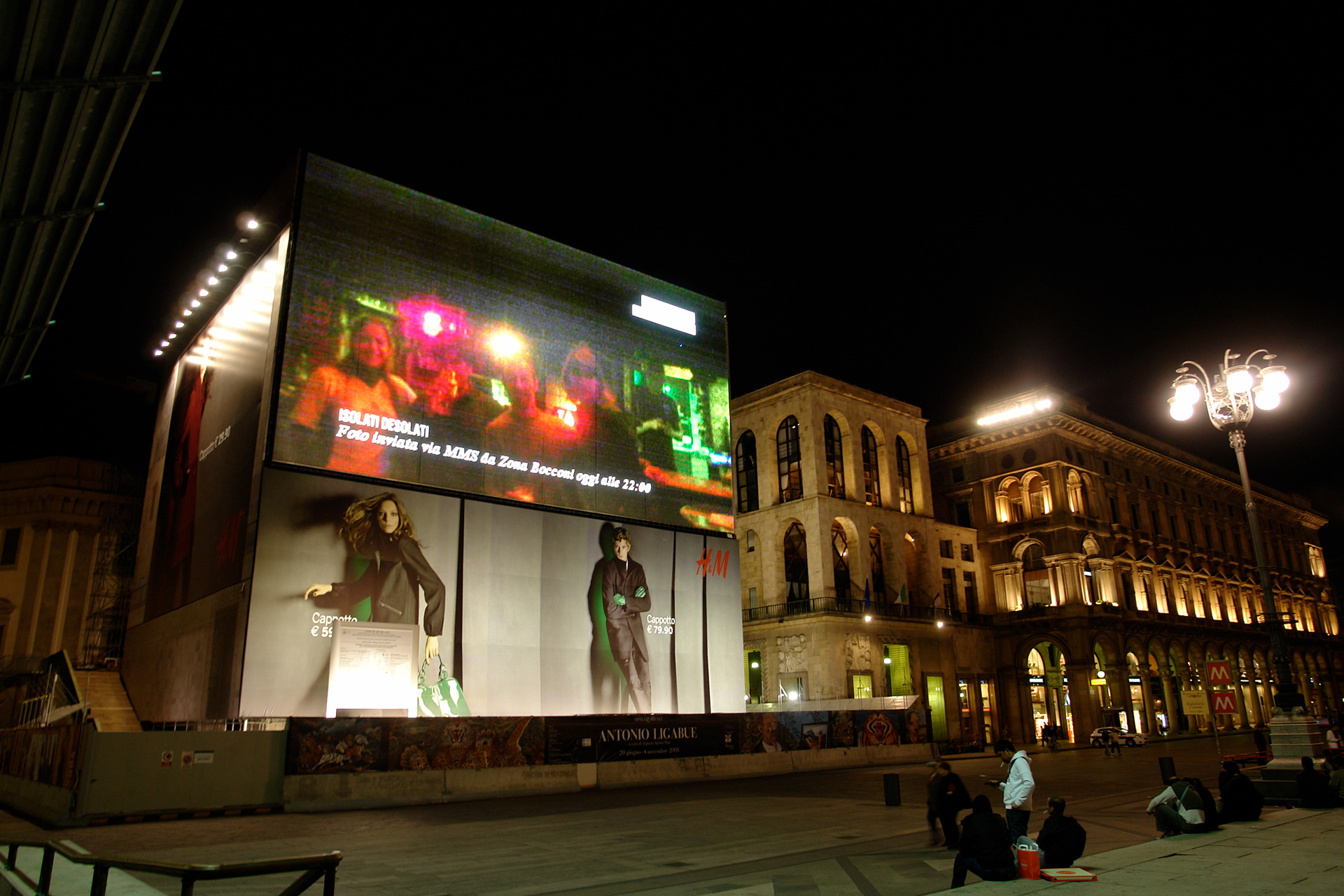Il lavoro collettivo realizzato viene trasmesso in tempo reale sull’Urban Screen, un maxischermo di cinquecento metri quadri in Piazza del Duomo e all’Ottagono in Galleria Vittorio Emanuele II, a Milano.