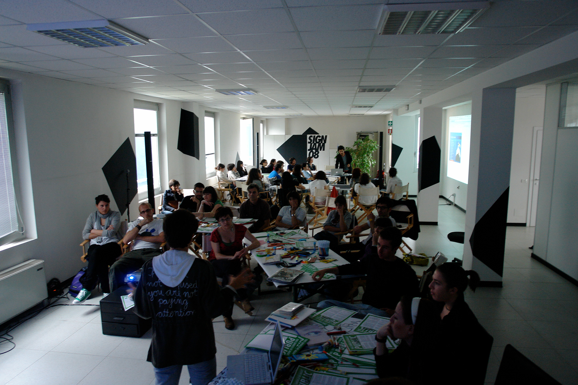 Guarda il catalogo di SignJam 08 su issuu.Andrew Losowsky scrive, e in questi anni è stato uno di quelli che più ha riflettuto sul ruolo dei magazine nel costruire le narrative urbane. Direttore di LeCool e di tanti altri esperimenti di informazione culturale, ha da poco pubblicato un volume che raccoglie più di mille magazine dal taglio pop in giro per l’Europa. “We Love Magazines” (Mike Koedinger Editions, 2007) è un prezioso atlante che mappa le produzioni editoriali periodiche. Le riviste sono forse il fenomeno più sottovalutato delle urban cultures. Il loro ruolo è cruciale nel catturare, aggregare, diffondere e sedimentare le novità a livello locale, come a livello internazionale. Ma la capacità di comunicare non si ferma ai magazine, si sposta anche nella capacità di usare gli spazi come un medium.