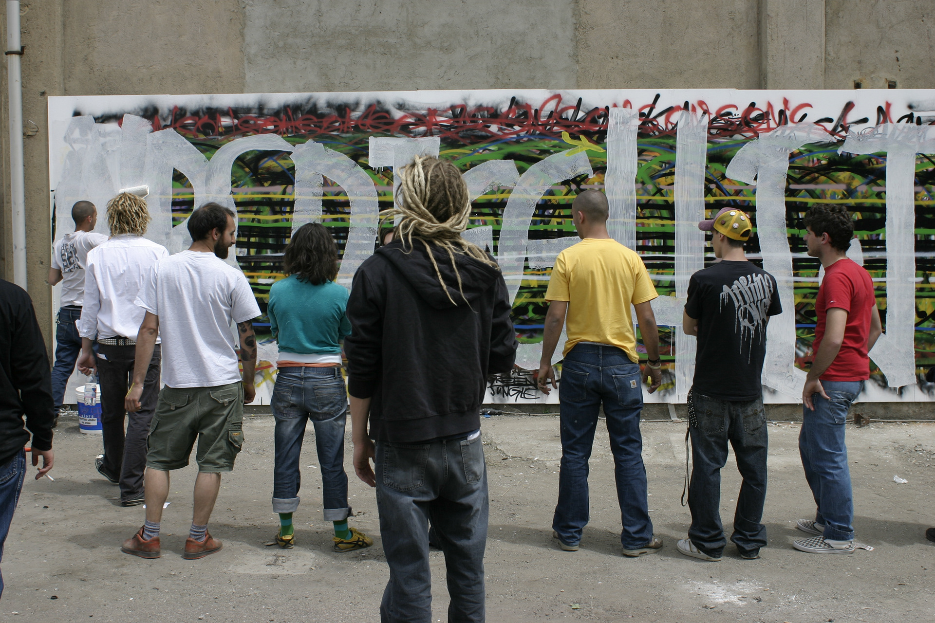 Azioni. Corpo e lettere. Il gruppo sceglie un nome e l’analisi delle forme espressive più comuni, l’alfabeto, la tag, il throw up, lo stile semplice o la costruzione complessa, per poi passare all’analisi, nel dettaglio, di corpo e lettere attraverso lo studio delle relazioni. Quest’ultimo argomento è sviluppato seguendo tre filoni: un approfondimento dei movimenti e dei segni, una questione di controllo e libertà, le differenze di formati, di processi e di materiali; uno sguardo dedicato al colore e al suo utilizzo, alla percezione degli spazi urbani in relazione all’uso delle bombolette.