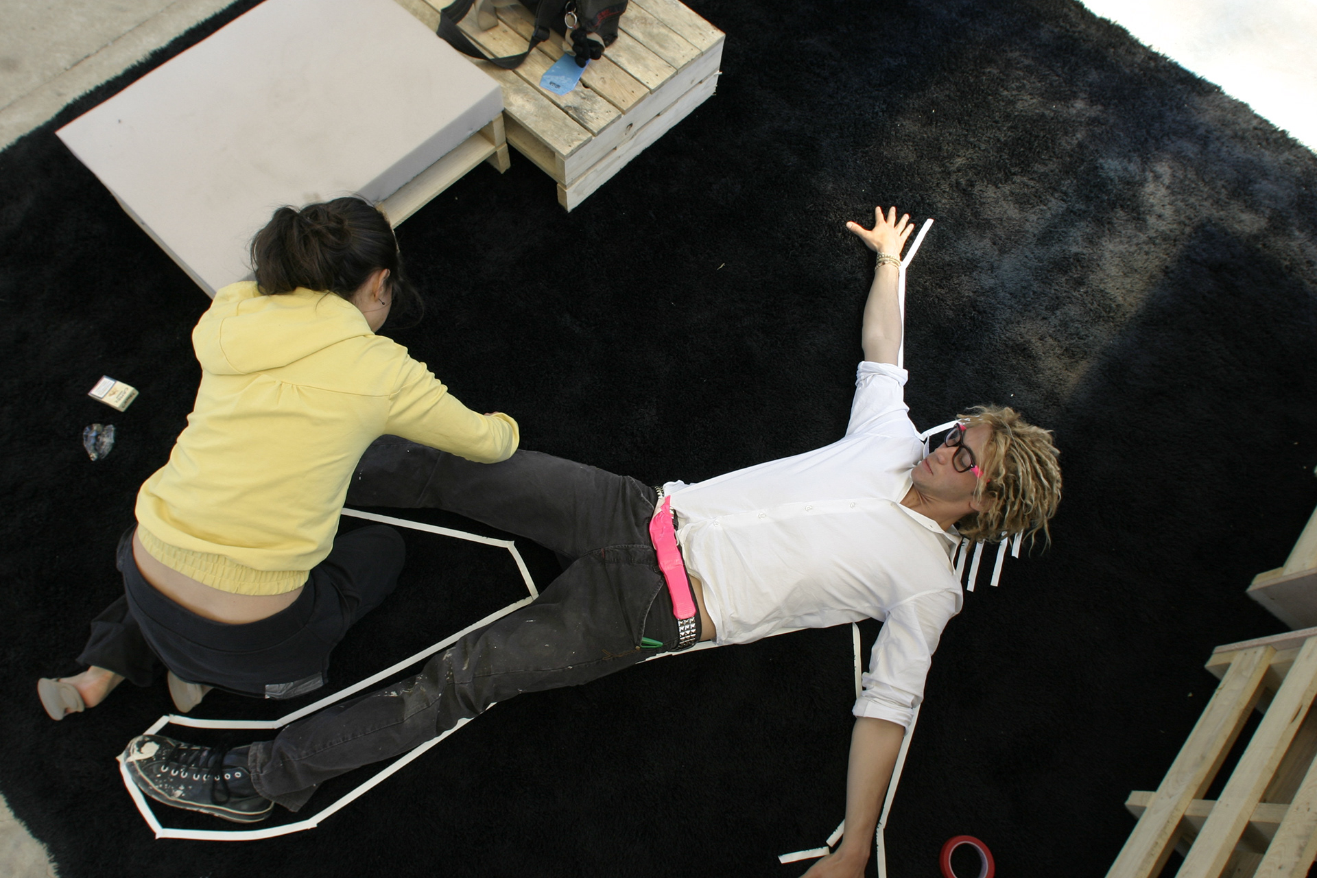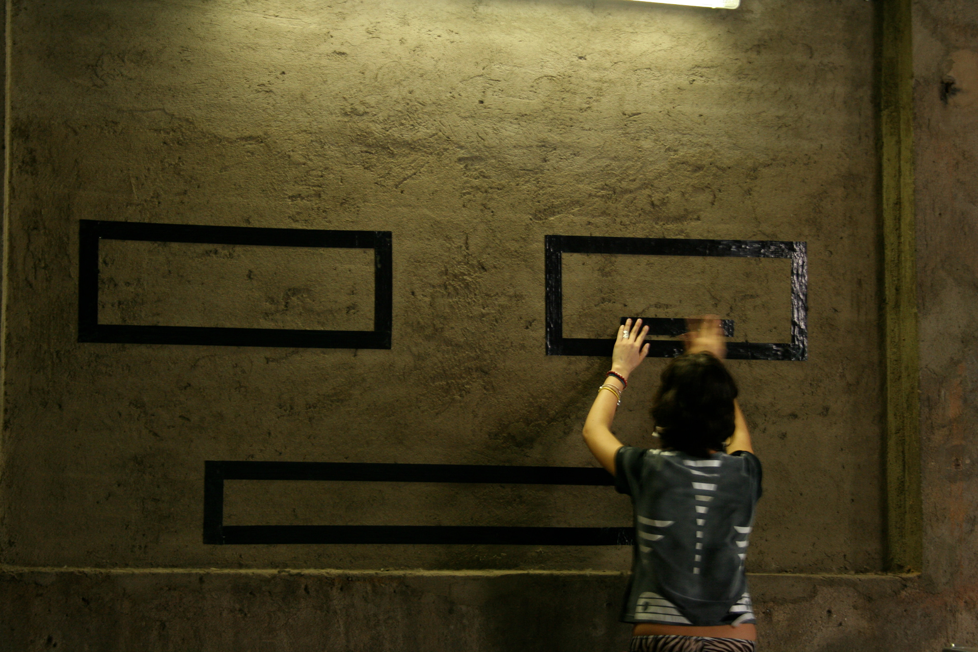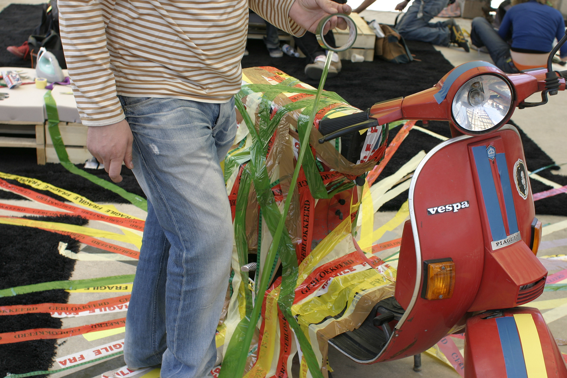 Una serie di attività proposte riguarda poi l’interazione diretta con lo spazio, ad esempio la realizzazione di un Tape-Graffito: questo “Floor-or Wall-Tapings” consiste nel rivestire e decorare, con il tape, un pavimento o una parete con immagini, segni o simboli diversi. Altro utilizzo, infine, è quello che viene chiamato “Tape-Teks”: la personalizzazione di una striscia di nastro adesivo attraverso una scritta, o la propria icona, lasciata sul tape con uno spray o uno stencil.